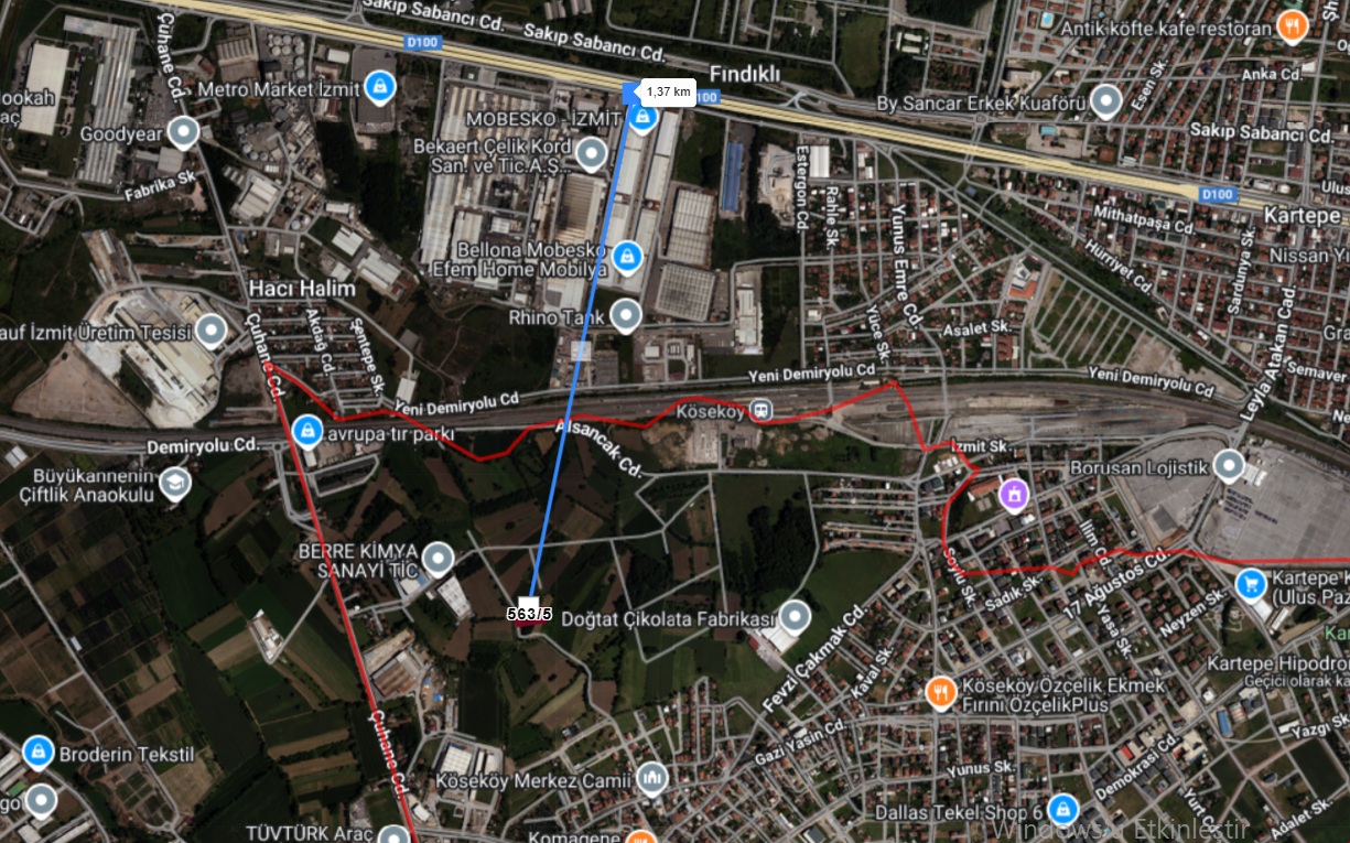 Çuhane Cd.ve Demiryolu Cd.sine 500 mt